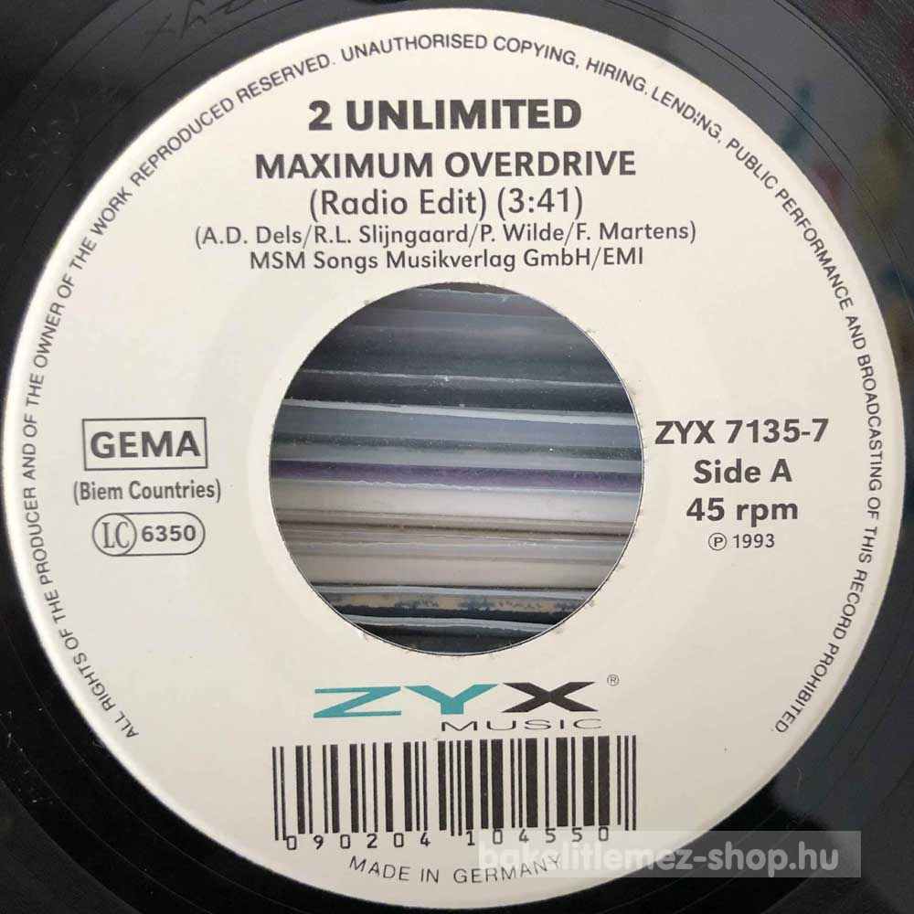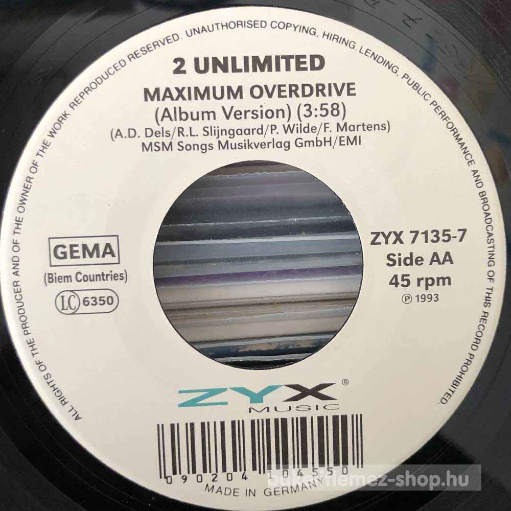 2 Unlimited - Maximum Overdrive (7", Single) - DE 1993