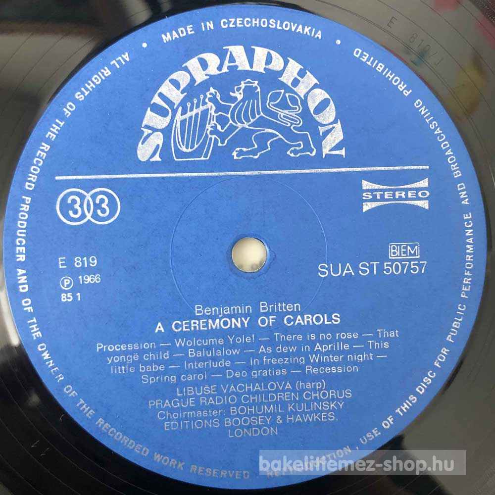 Arthur Honegger - Benjamin Britten - Christmas Cantata - A Ceremony Of Carols (LP, Album) - Cseh 1966