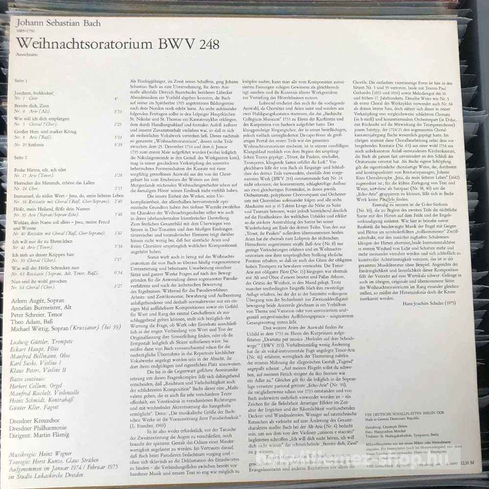 Bach, Arleen Augér - Weihnachtsoratorium (Ausschnitte) (LP, Album) - GDR 1975