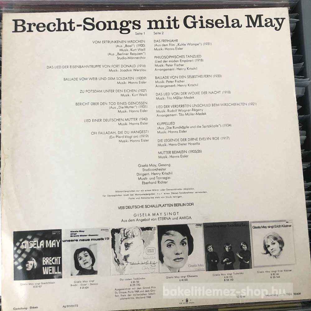 Brecht, Gisela May - Brecht-Songs Mit Gisela May (LP, Album) - GDR 1977