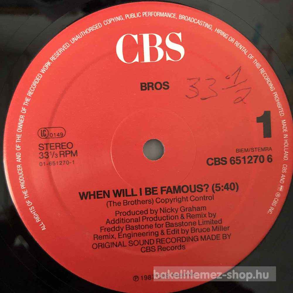Bros - When Will I Be Famous? (12", Maxi) - EU 1987