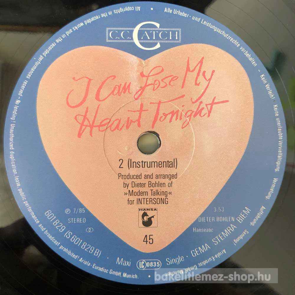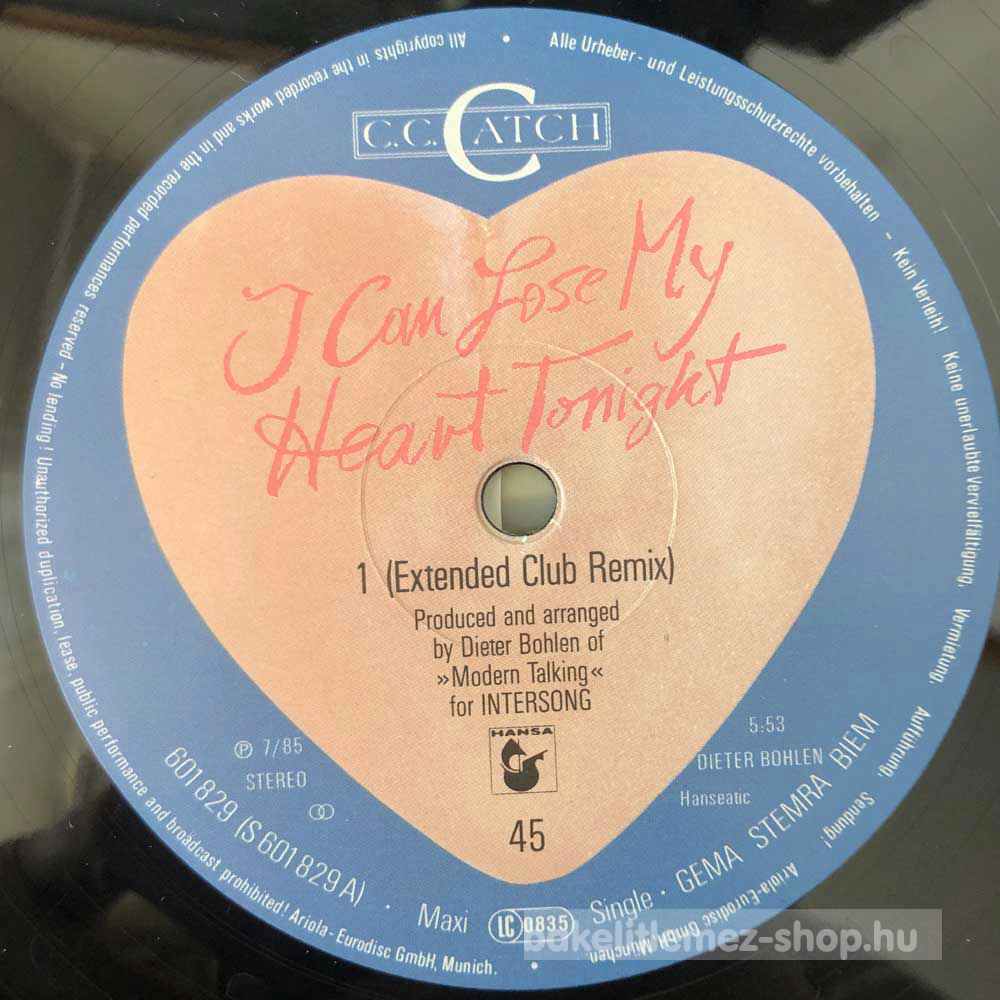 C.C. Catch - I Can Lose My Heart Tonight (Extended Club Remix) (12", Maxi) - DE 1985