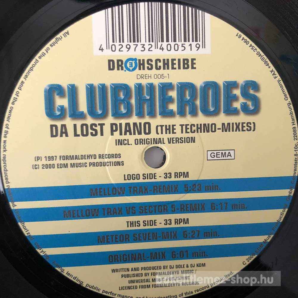 Clubheroes - Da Lost Piano (The Techno Mixes) (12", Maxi) - DE 2000