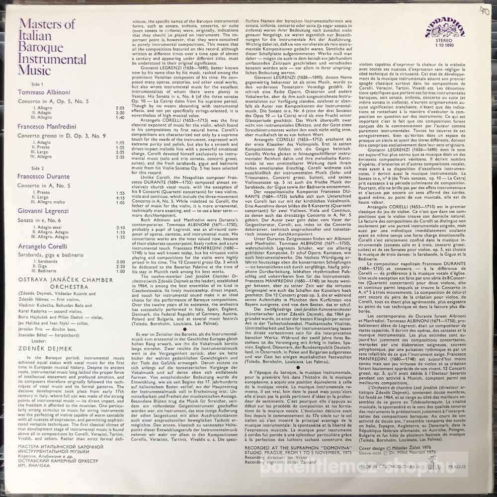 Corelli, Durante, Manfredini, Albinoni - Masters Of Italian Baroque Instrumental Music (LP, Album) - Cseh 1976