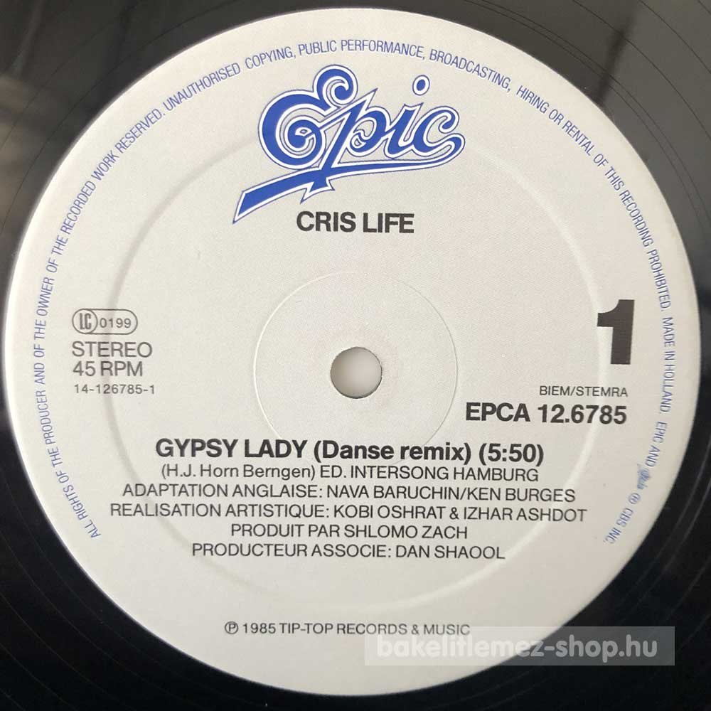 Cris Life - Gypsy Lady (Danse Remix) bakelit lemezCris Life - Gypsy Lady (Danse Remix) - Epic 12.6785 bakelit (vinyl) hanglemez 0000000000000