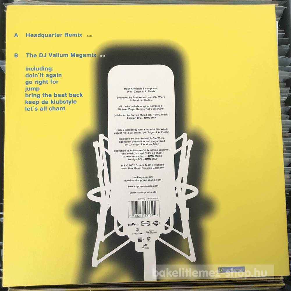 DJ Valium Feat. Michael Zager - Lets All Chant.... Part 2 (12") - DE 2002