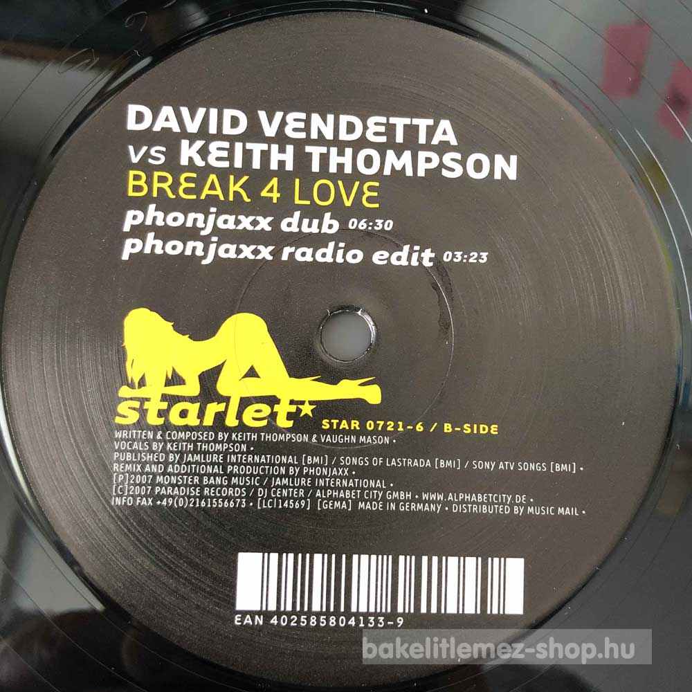 David Vendetta vs. Keith Thompson - Break 4 Love bakelit lemezDavid Vendetta vs. Keith Thompson - Break 4 Love - Starlet Star 0721-6 bakelit (vinyl) hanglemez 0000000000000