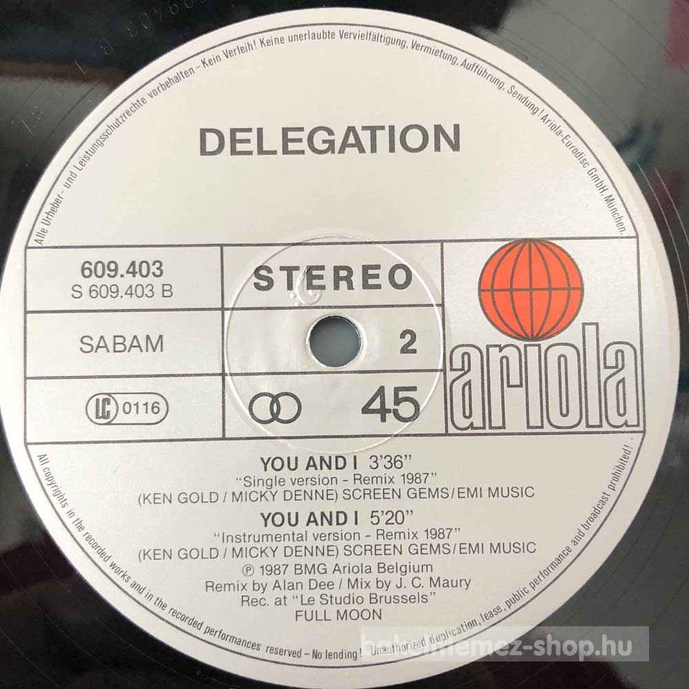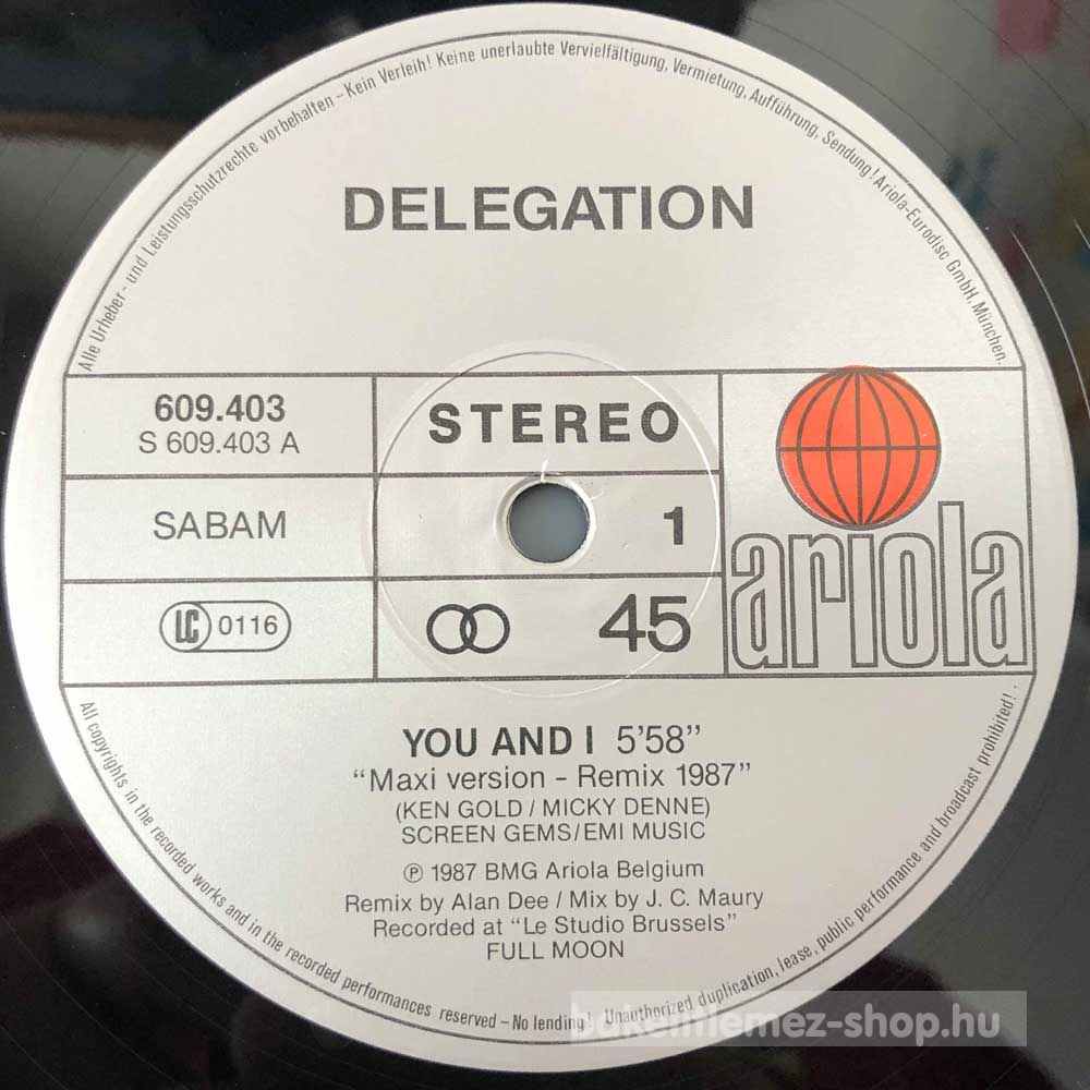 Delegation - You And I (Remix 87) (12", Maxi) - Belgium 1987