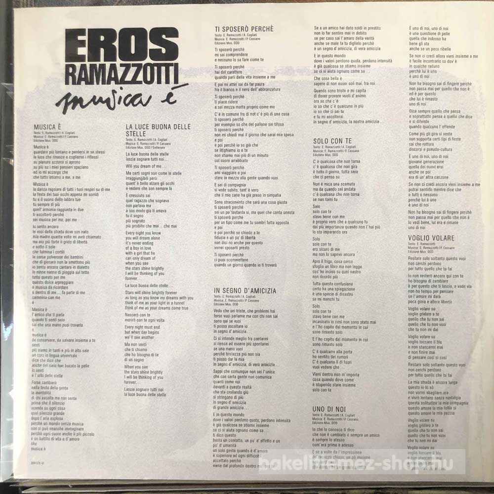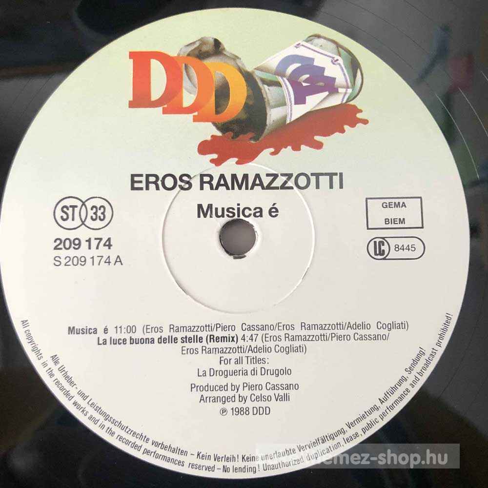 Eros Ramazzotti - Musica É bakelit lemezEros Ramazzotti - Musica É - DDD 209 174 bakelit (vinyl) hanglemez 0000000000000
