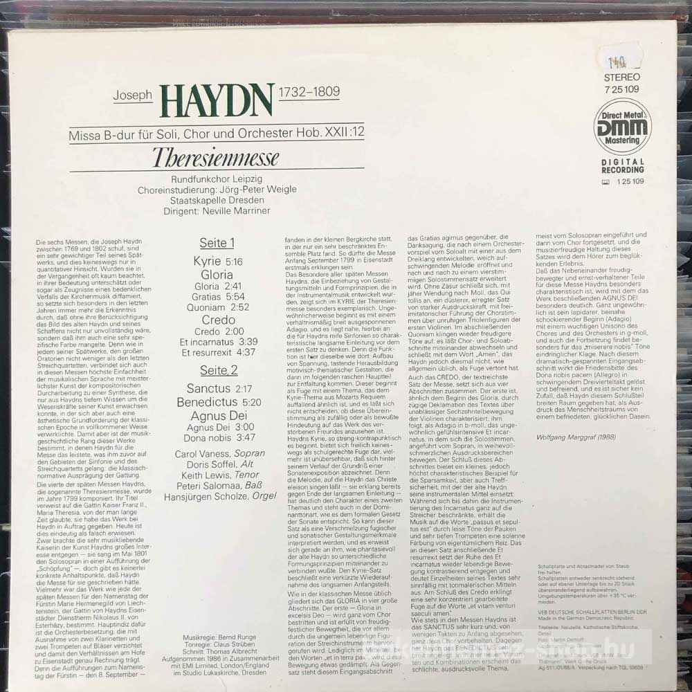 Haydn - Theresienmesse bakelit lemezHaydn - Theresienmesse - ETERNA 7 25 109 bakelit (vinyl) hanglemez 0000000000000
