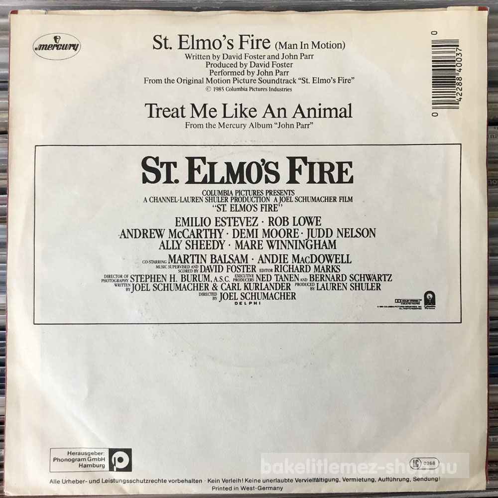 John Parr - St. Elmos Fire (Man In Motion) bakelit lemezJohn Parr - St. Elmos Fire (Man In Motion) - Mercury 884 003-7 bakelit (vinyl) hanglemez 0000000000000