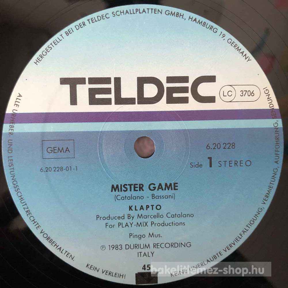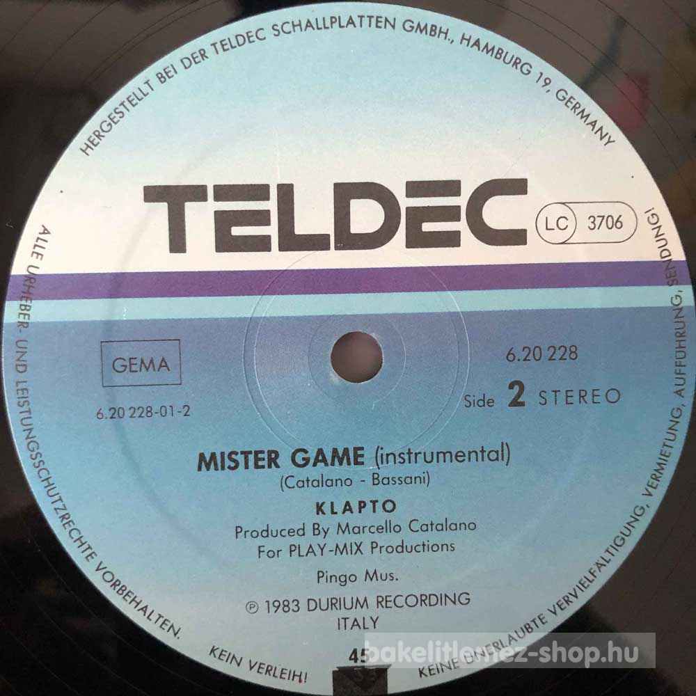 Klapto - Mister Game (Extended Version) bakelit lemezKlapto - Mister Game (Extended Version) - TELDEC 6.20228 bakelit (vinyl) hanglemez 0000000000000