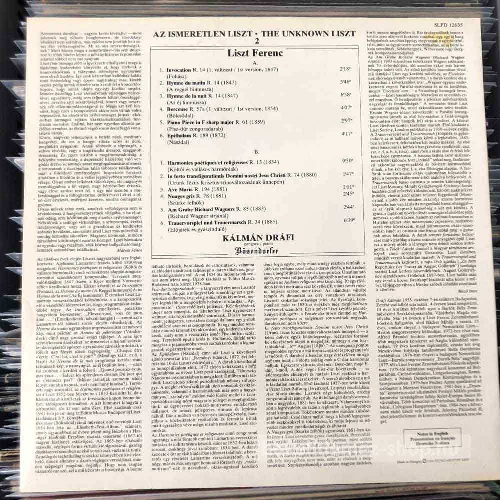 Liszt, Kálmán Dráfi - The Unknown Liszt - Piano Pieces 2 LP - HU 1986