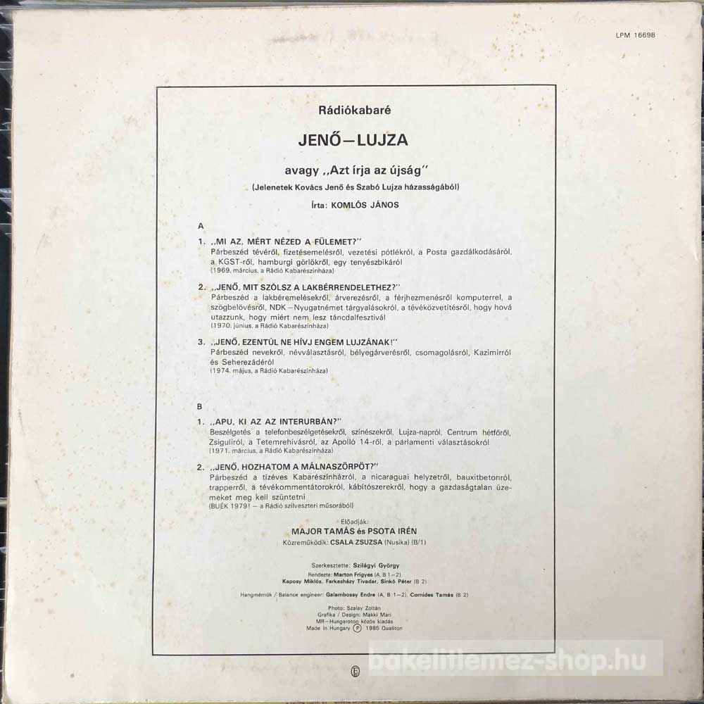 Major Tamás És Psota Irén - Azt Írja Az Újság bakelit lemezMajor Tamás És Psota Irén - Azt Írja Az Újság - Qualiton LPM 16698 bakelit (vinyl) hanglemez 0000000000000