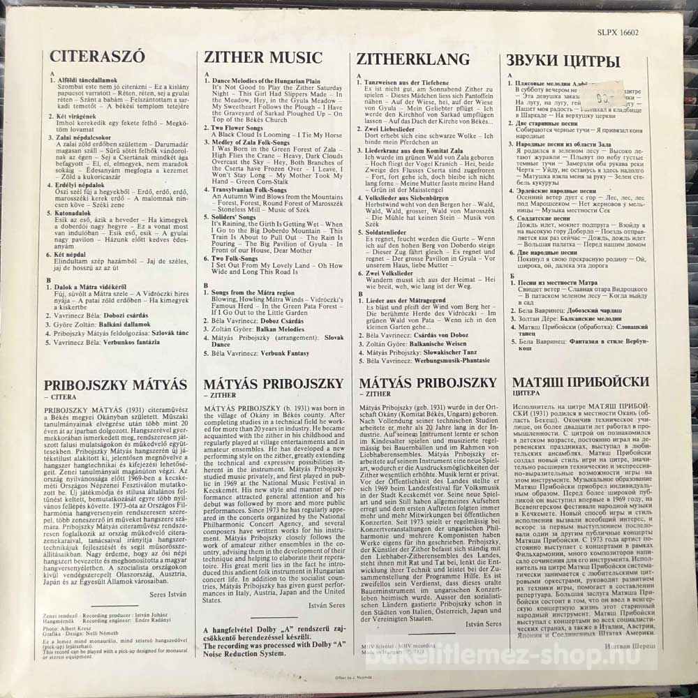 Mátyás Pribojszky - Citeraszó (The Sound Of The Zither) (LP, Album) - HU 1978