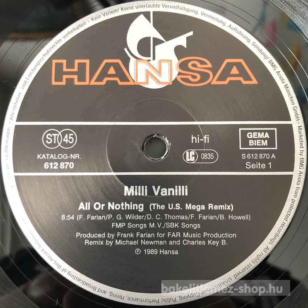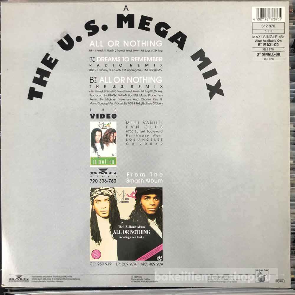 Milli Vanilli - All Or Nothing (The U.S. Mega Mix) (12", Maxi) - DE 1989