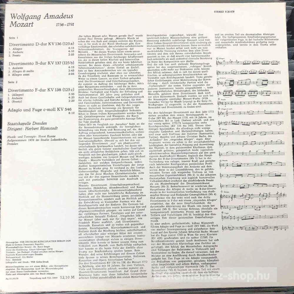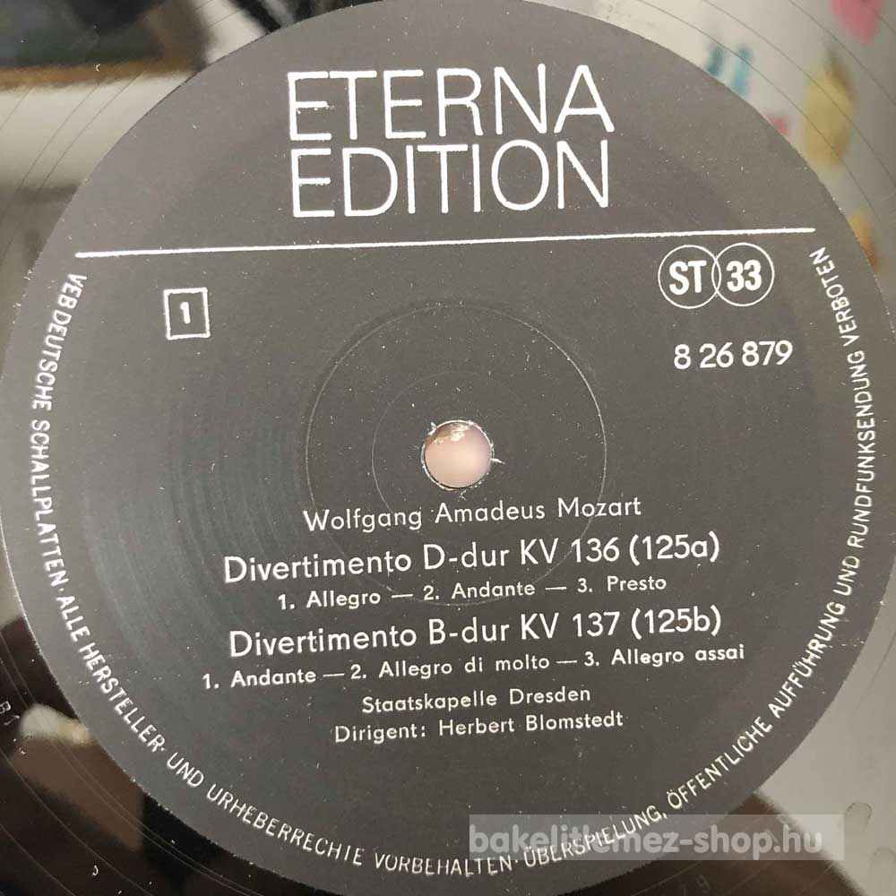 Mozart - Divertimenti D-dur KV 136 B-dur KV 137 F-dur KV 138 bakelit lemezMozart - Divertimenti D-dur KV 136 B-dur KV 137 F-dur KV 138 - ETERNA 8 26 879 bakelit (vinyl) hanglemez 0000000000000