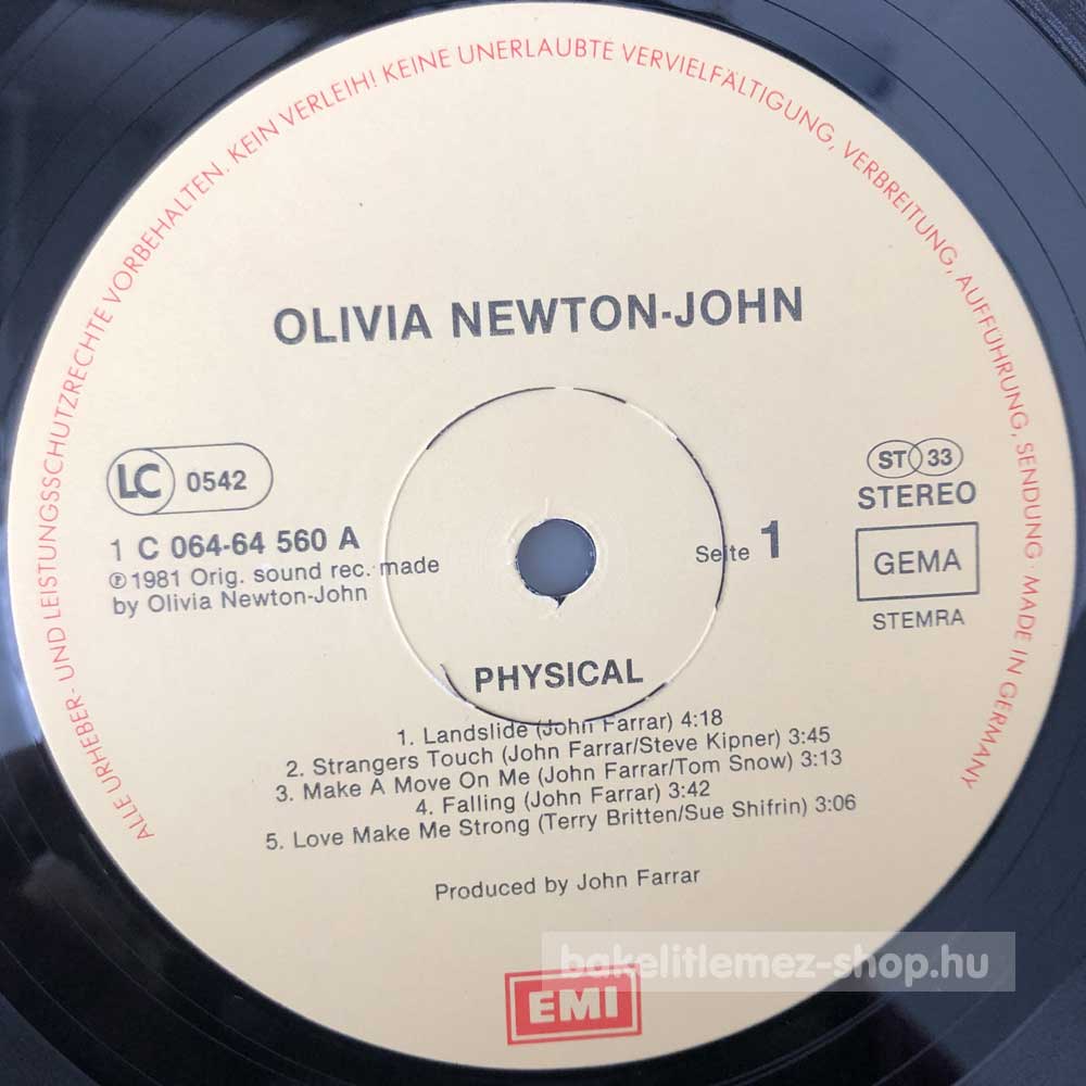 Olivia Newton-John - Physical bakelit lemezOlivia Newton-John - Physical - EMI 064-64 560 bakelit (vinyl) hanglemez 0000000000000