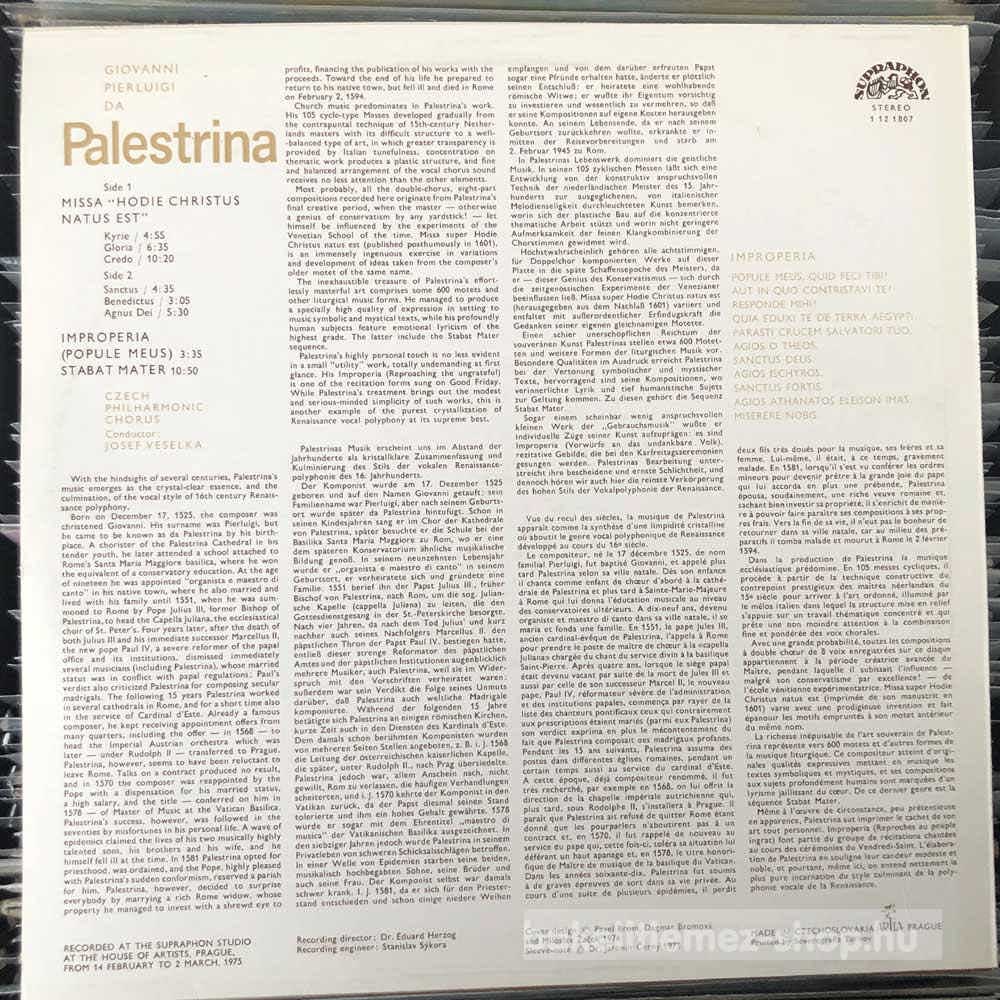 Palestrina - Missa Hodie Christus Natus Est, Stabat Mater bakelit lemezPalestrina - Missa Hodie Christus Natus Est, Stabat Mater - Supraphon 1 12 1807 bakelit (vinyl) hanglemez 0000000000000