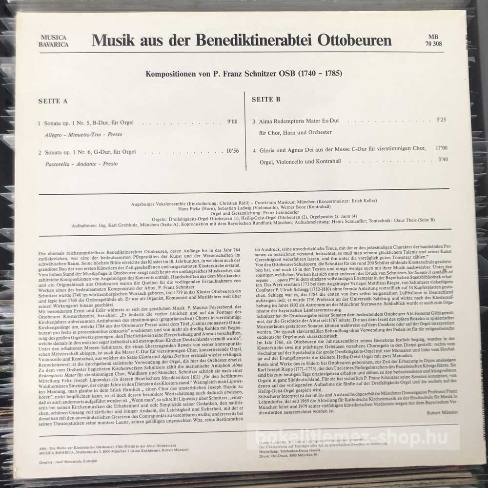 Pater Franz Schnitzer - Kirchen- Und Orgelwerke In Ersteinspielung bakelit lemezPater Franz Schnitzer - Kirchen- Und Orgelwerke In Ersteinspielung - Musica Bavarica MB 70 308 bakelit (vinyl) hanglemez 0000000000000
