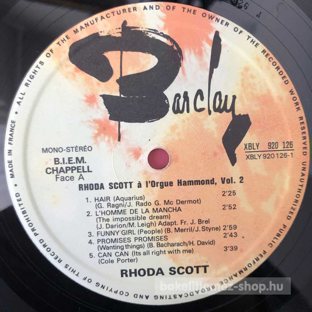 Rhoda Scott - A L Orgue Hammond Vol.2 bakelit lemezRhoda Scott - A L Orgue Hammond Vol.2 - Barclay 920 126 bakelit (vinyl) hanglemez 0000000000000