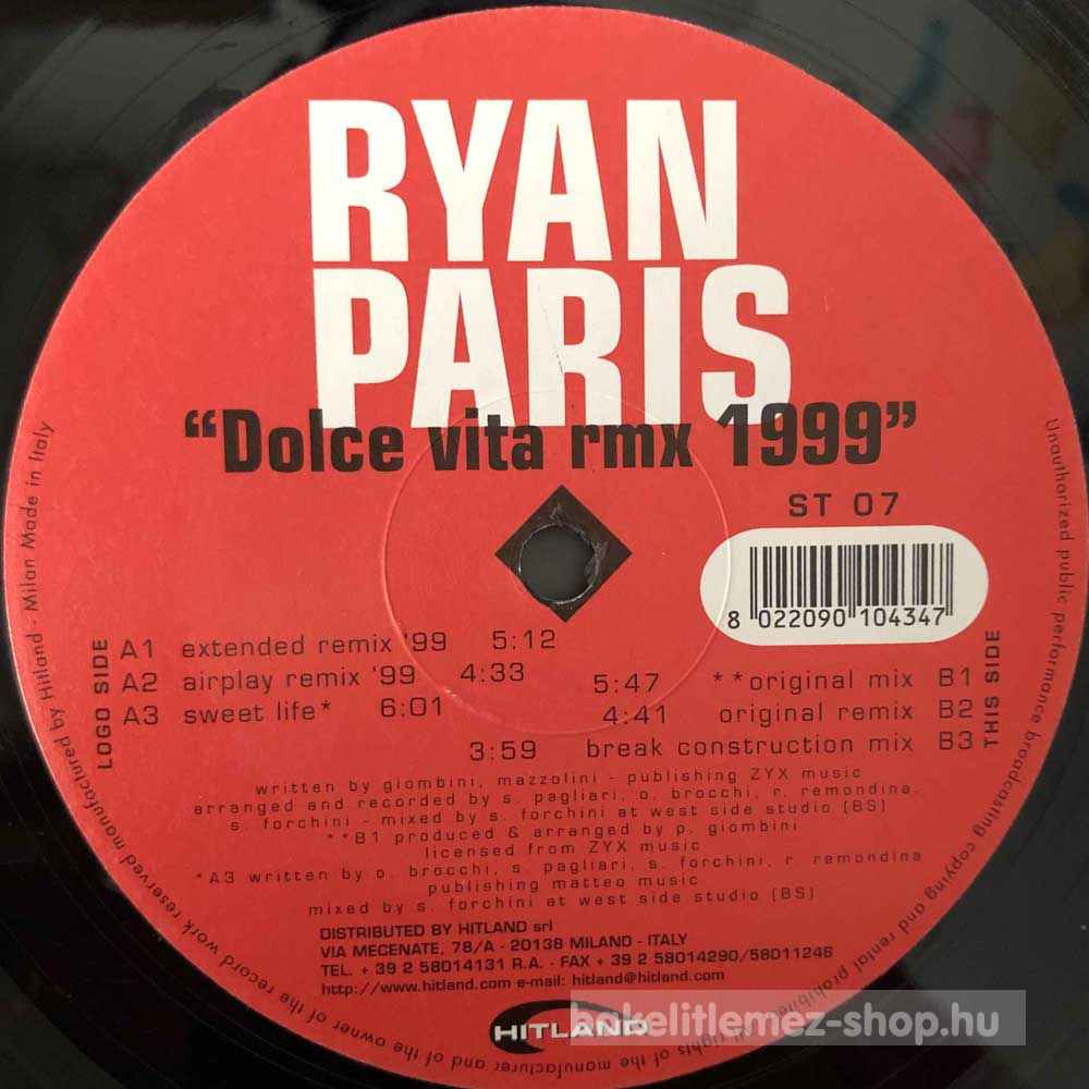 Ryan Paris - Dolce Vita Rmx 1999 (12") - Italy 1999
