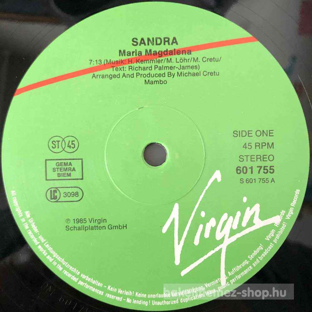Sandra - (Ill Never Be) Maria Magdalena bakelit lemezSandra - (Ill Never Be) Maria Magdalena - Virgin 601 755 bakelit (vinyl) hanglemez 0000000000000