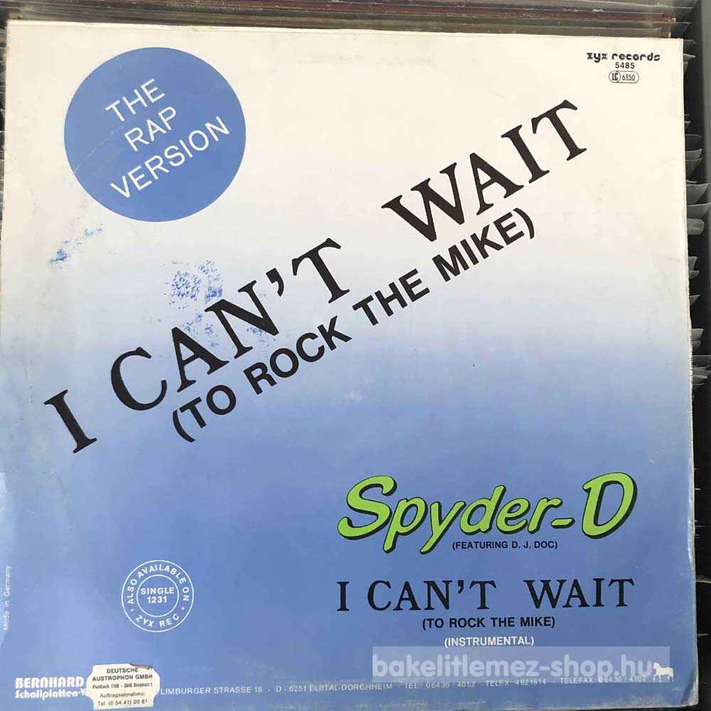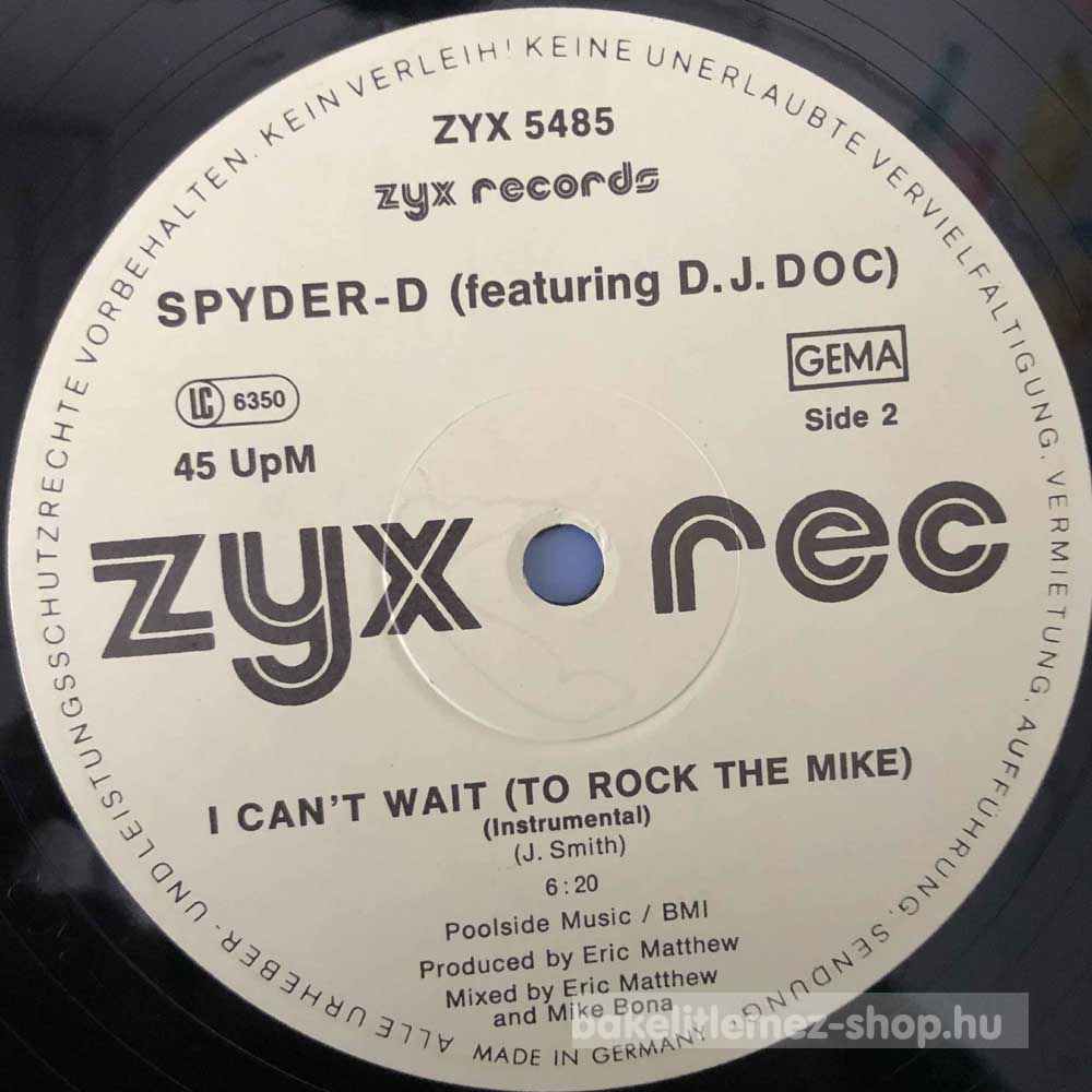 Spyder-D Feat. D. J. DOC - I Can t Wait (To Rock The Mike) (12") - DE 1986
