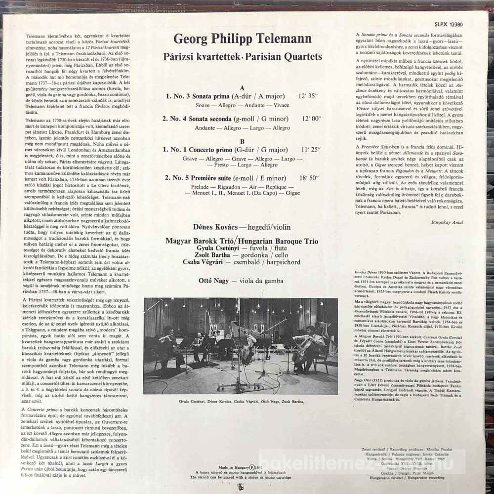 Telemann - Parisian Quartets Nos. 1, 3, 4, 5 (LP, Album) - HU 1982