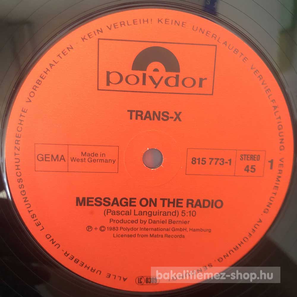 Trans-X - Message On The Radio (Special Maxi Version) bakelit lemezTrans-X - Message On The Radio (Special Maxi Version) - Polydor 815 773-1 bakelit (vinyl) hanglemez 0000000000000