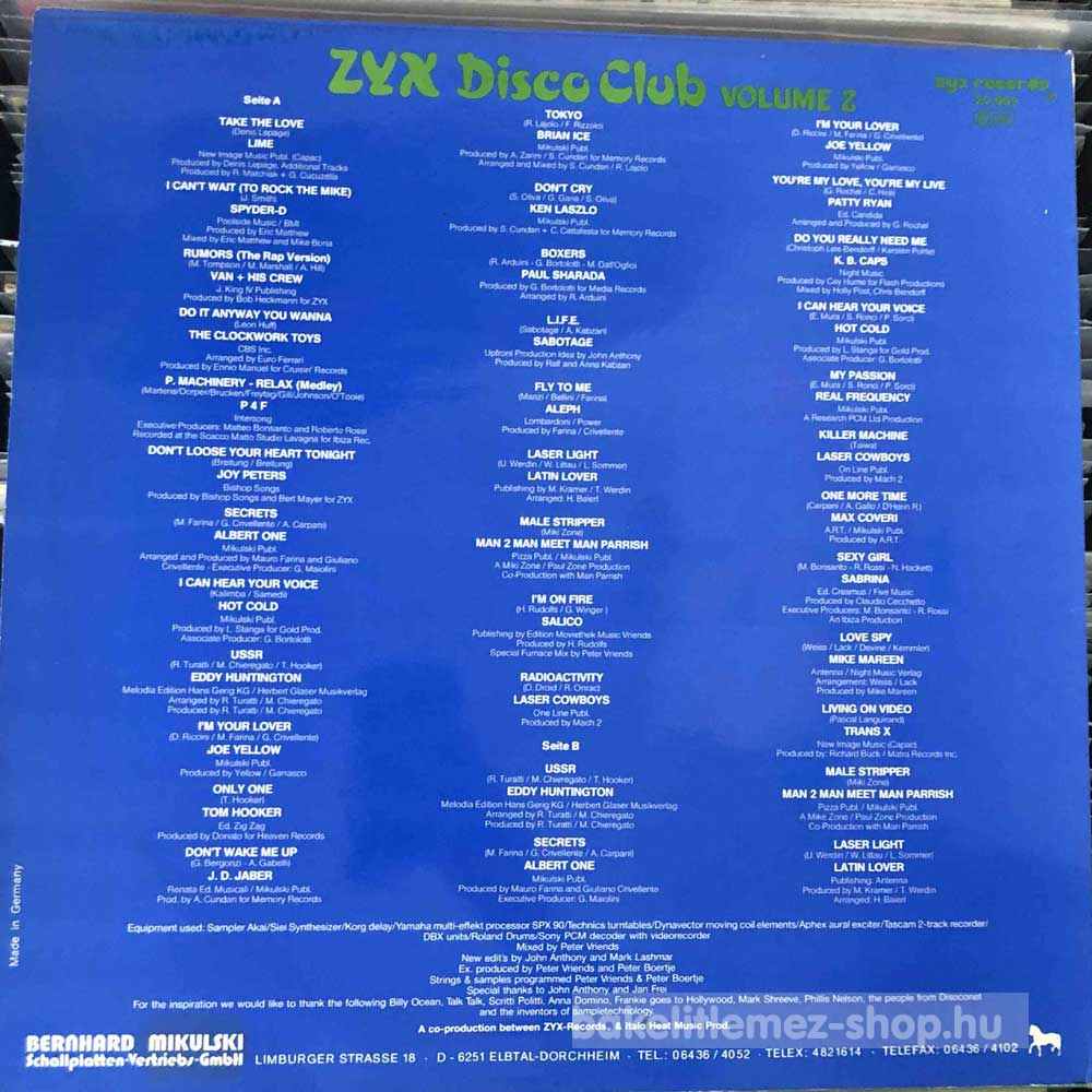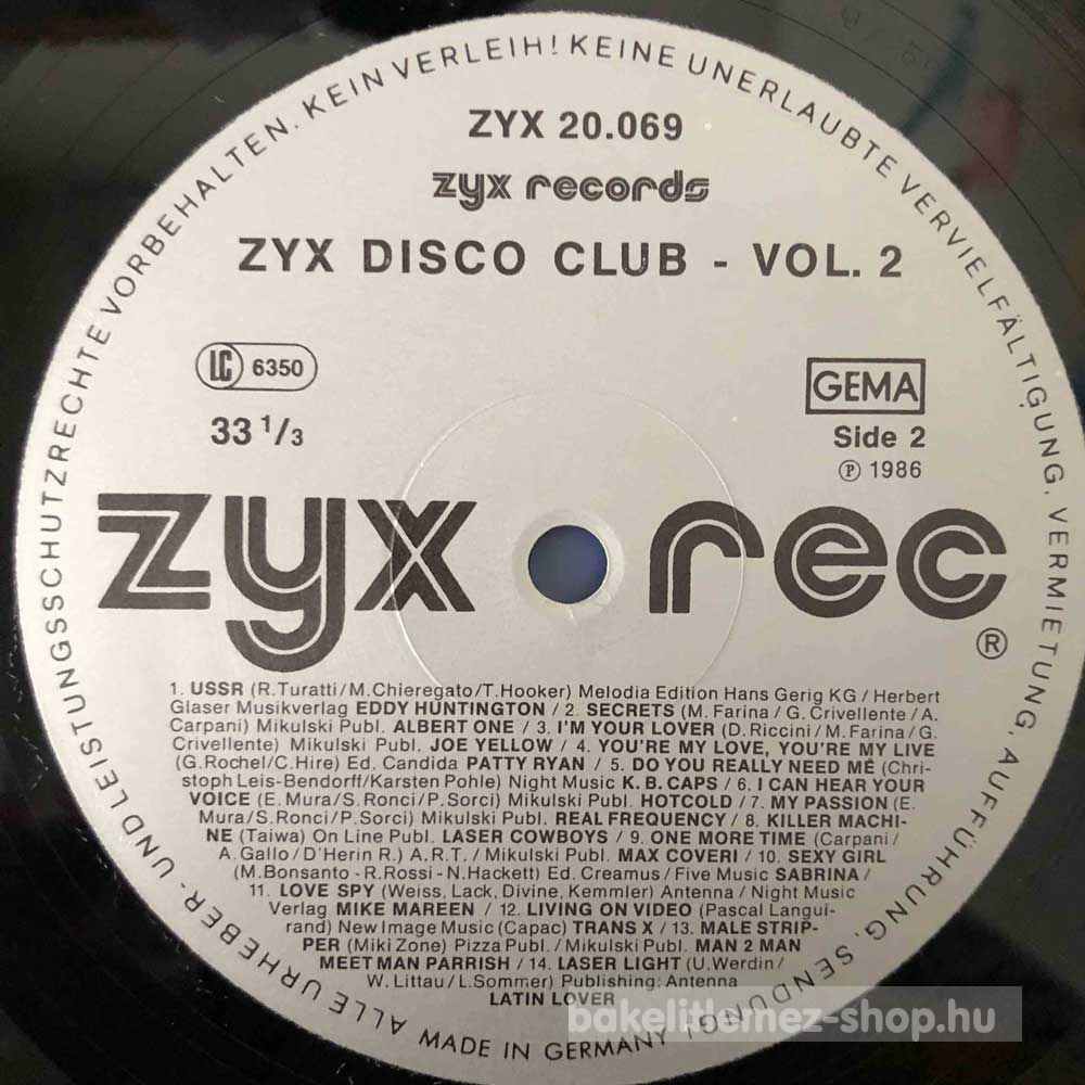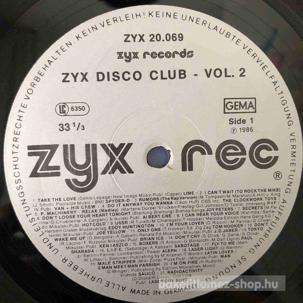Various - ZYX Disco Club Volume 2 (LP, Comp, Mixed) - DE 1986