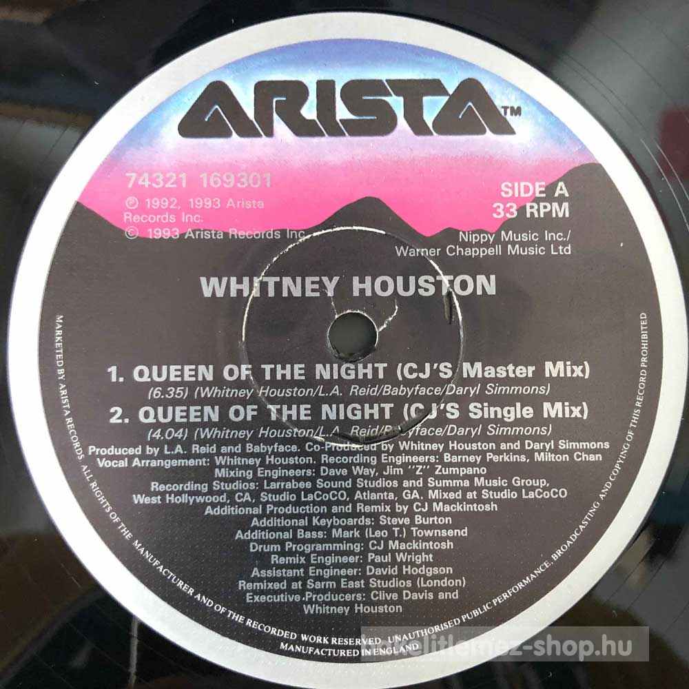 Whitney Houston - Queen Of The Night bakelit lemezWhitney Houston - Queen Of The Night - Arista 74321 169301 bakelit (vinyl) hanglemez 0000000000000